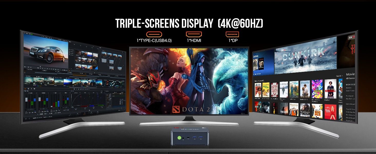 | Display Support | Triple Display Output: – HDMI 2.0 (4K@60Hz) – DisplayPort (4K@144Hz) – USB 4.0 Type-C (4K@144Hz) |